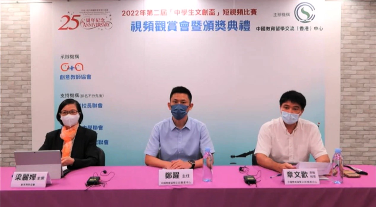 2022年8月3日,為慶祝香港回歸祖國25周年,在教育部港澳臺辦公室的支持和指導下,由中國教育留學交流(香港)中心主辦,創意教師協會承辦的2022年第二屆“中學生文創杯”短視頻比賽視頻觀賞會暨頒獎典禮線上成功舉辦。此次活動在九龍地域校長聯會、東華三院、知識雜誌、香港中文中學聯會、香港青年協進會、香港教育工作者聯會、星學匯、新界校長會和學友社等團體和機構的支持和協助下,通過面向全港中學生舉辦短視頻比賽,以“疫中有愛”為主題,分享發生在身邊的感人故事,向社會傳遞積極關愛的正能量,大力弘揚家國情懷,充分展示青年學生積極向上的風貌。
