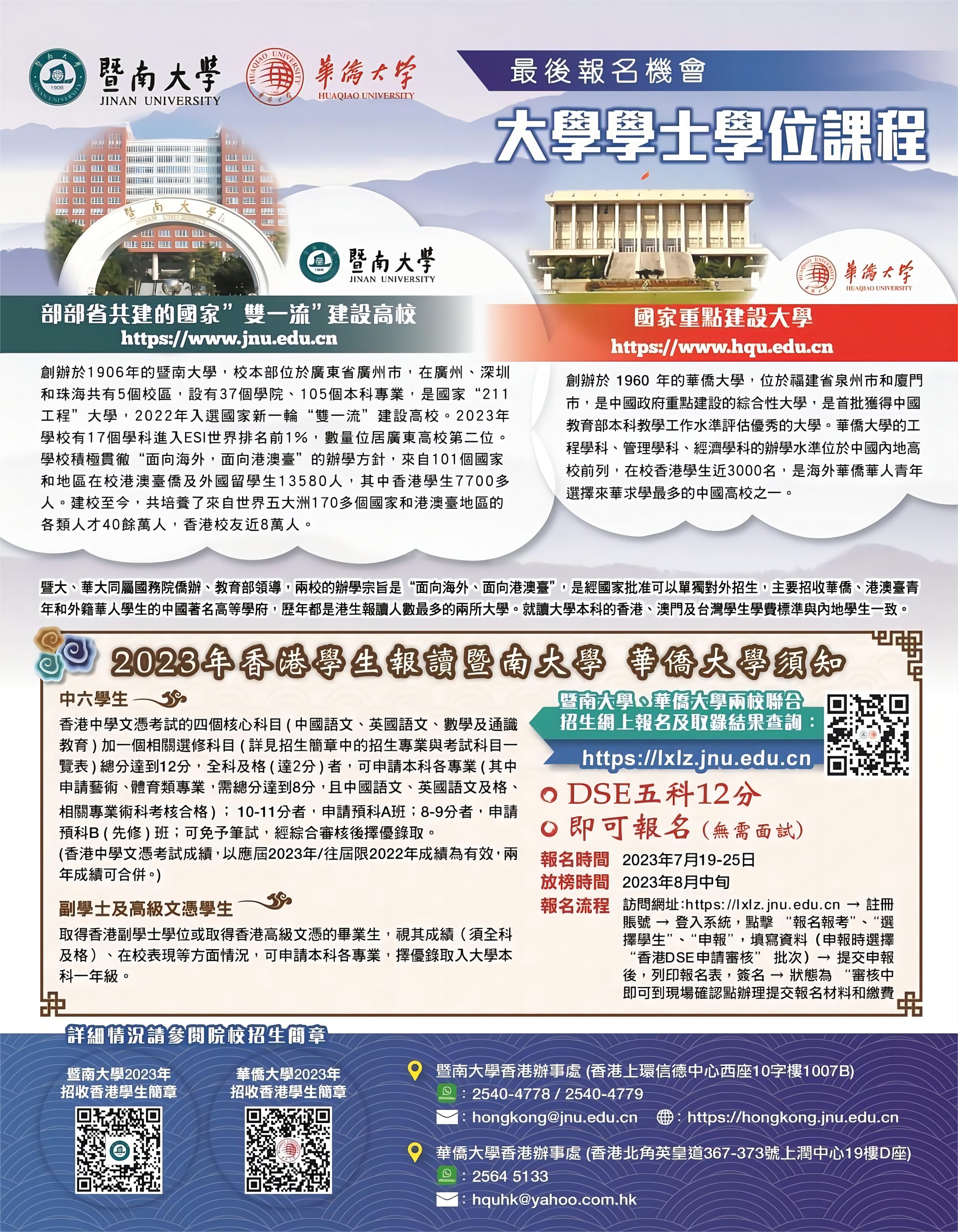 內地升學的最後機會(暨大華大報名時間:2023年7月19-25日)