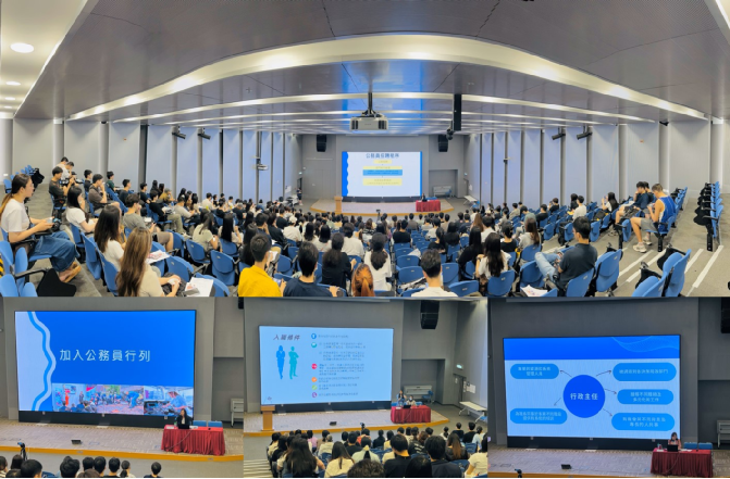 30日下午舉辦的「內地高校香港學生回港申請香港公務員職位輔導講座」分為三個時段進行演講,首先由香港公務員事務局聘任政策部總行政主任李婉君女士主講,講座主題為「香港公務員的聘任政策與程序及服務條件」。李主任介紹了香港公務員的概況,其後講解了同學們最為關切的香港公務員聘任條件與程序,以及相關薪酬福利等資訊。第二時段和第三時段分別由香港公務員事務局政務職系部助理秘書長梁珊娜女士和一般職系培訓及發展組高級行政主任張裕瑩女士擔任主講,講座主題分別為「政務主任職系介紹」和「行政主任職系介紹」,分別介紹了政務主任和行政主任的申請條件、工作環境及相關的薪酬福利等資訊。