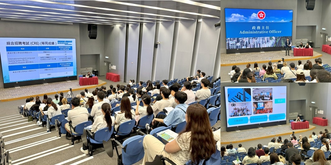 7月30日由五大紀律部隊負責招聘及訓練的部門代表分別進行演講。分別是香港特區政府警務處招募組陸皓怡高級督察、懲教署人力資源分組黃華威懲教主任、海關訓練及發展科韓梓新督察、消防處招聘、訓練及考試課麥德泉高級消防隊長和入境事務處招聘及訓練研究組張文雅入境事務主任,主講嘉賓分別介紹了各自部門的招募程序、申請途徑、薪酬福利及職業發展等。