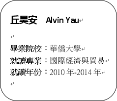 我鼓勵學弟妹們要理解自己,明白自己擁有什麼。而我們在國內留學,這個經驗絕對是有價值的。